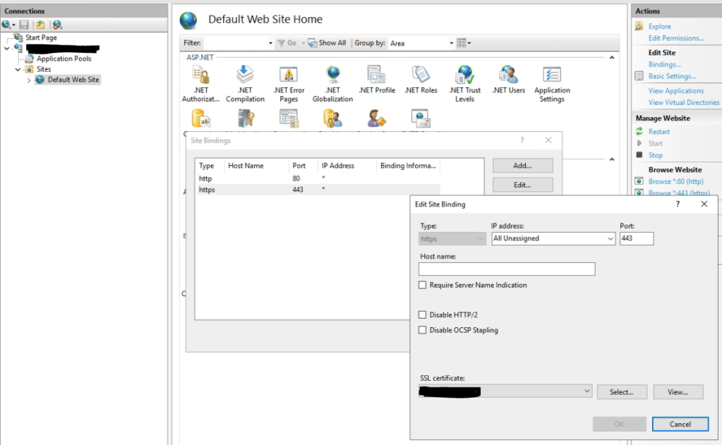 ****After cert install SSL need to bind into port 443 in order to be active.