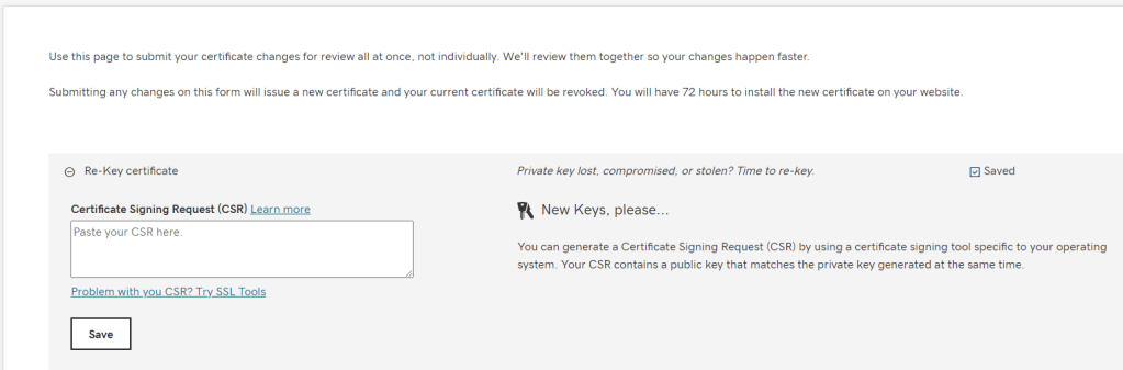 Then head to your favourite SSL provider and complete the cert renewal. My cert provider was Go daddy and usually godaddy auto renew SSL but cannot use this SSL due to the fact that it is missing private key info from the server. So basically click on cert and copy and past entire certreq.txt file info and request the SSL from Go daddy.